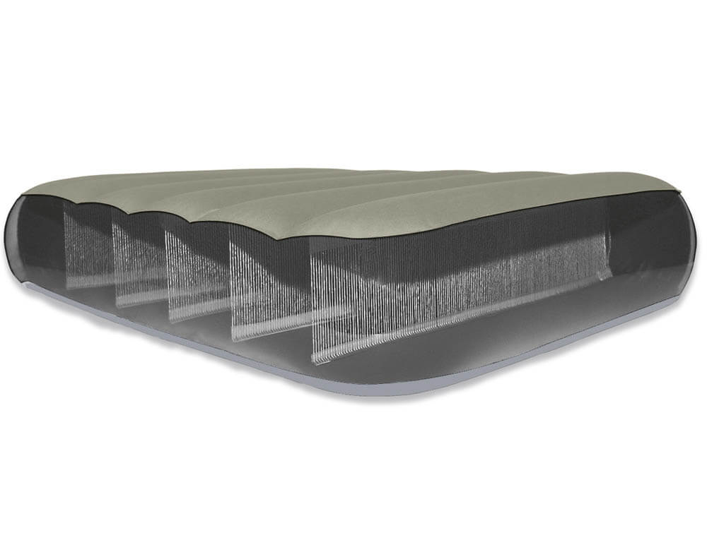 Надувной матрас серии Dura Beam изготовлен по технологии Fiber-Tech. Внутренние перегородки сделаны из множества полиэфирных волокон, за счет чего он становится намного прочнее и легче. Поперечное расположение ребер жесткости придает матрасу необходимую твердость и упругость.
